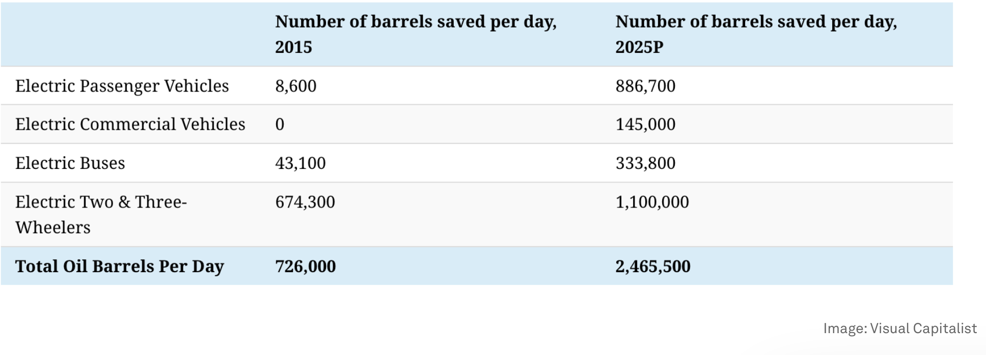 So these sources are saying 2.5 million barrels per day of global oil demand destruction by 2025. And despite the growth rates we are observing we are to believe that in the next five years we will only see another 2.5 million bpd of demand destruction. I am not buying it. And here are a few reasons why.