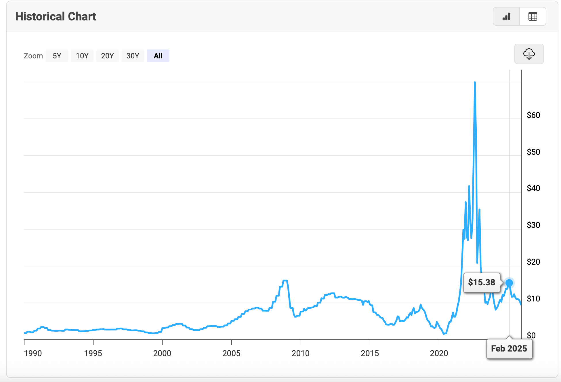 This makes sense. There is a massive oversupply baked into that time period. So prices will go down. No one can deny that. For reference here is the historical price chart for EU gas markets.