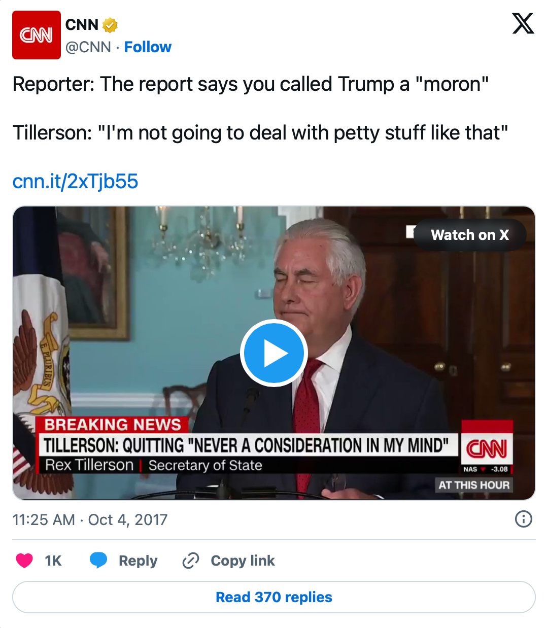In 2017, former Exxon CEO and Secretary of Energy Rex Tillerson called President Donald Trump a fucking moron. Now it is unusual for me to find common ground with an Exxon CEO about much, but on this we agree.