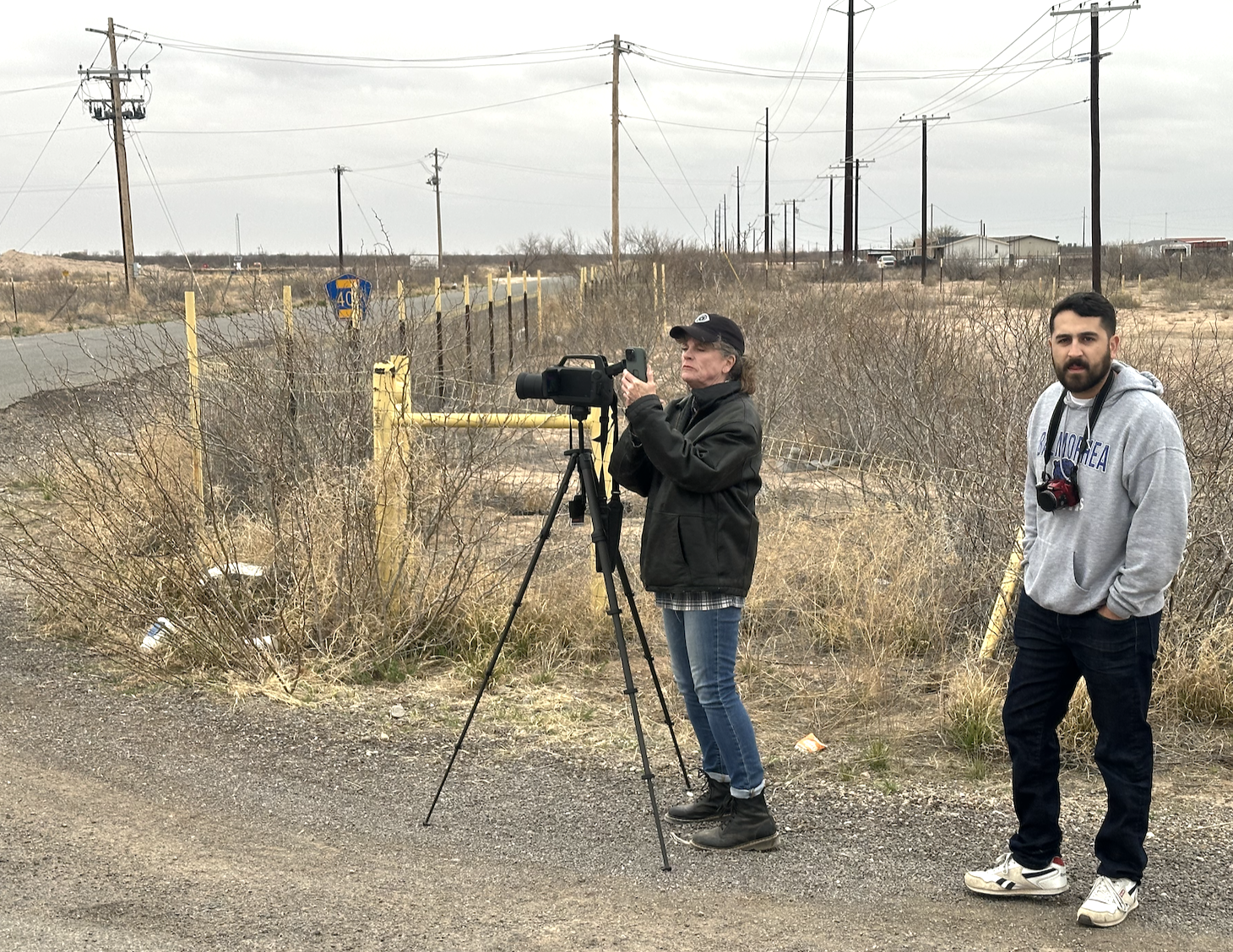 Our next stop was another oil field site that shared space with large wind turbines. The oil and gas industry uses a lot of electricity. There is power infrastructure everywhere in the Permian and the industry has been an early adopter of using clean renewable power for its own uses. We didn’t see any egregious emissions at this oil and gas facility.