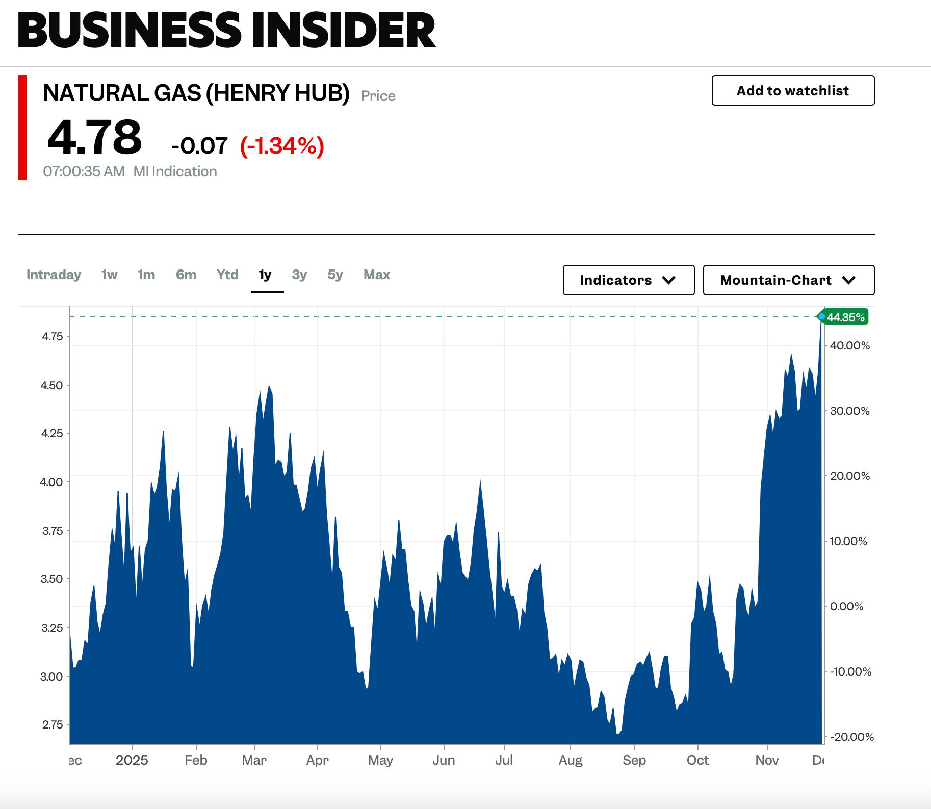 China LNG imports down again - China will be importing less LNG in 2025 than it did in 2024. And this new article mentions that, “The outlook for 2026 is also not encouraging: Overall gas demand is set to slump, suggesting it has decoupled with GDP growth, BNEF analysts said at a summit this week.”